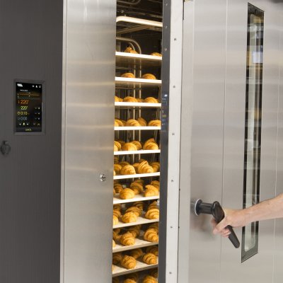 Los hornos se encuentran disponibles en tres tamaños y pueden funcionar con electricidad, gasoil o gas. El sistema de calefacción maximizado, el flujo de aire optimizado, el vapor y el horno bien aislado, junto con el panel de mandos inteligente proporciona un uso energético reducido y un resultado de cocción más uniforme. El panel de mandos inteligente también permite al usuario medir y minimizar el uso energético del horno en cada cocción.