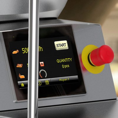 La Divisora de masa SD600 está equipada con un panel táctil de 8” fácil de usar, que integra funciones inteligentes para optimizar la producción y garantizar un control total del proceso. Permite ajustar con precisión el peso de las piezas de masa, la velocidad de producción y la cinta transportadora, así como configurar el número de cámaras de dosificación. Incluye además una función de referencia de peso, herramientas de servicio y mantenimiento, así como opciones avanzadas de monitorización que aseguran una producción eficiente, consistente y fiable en entornos industriales.